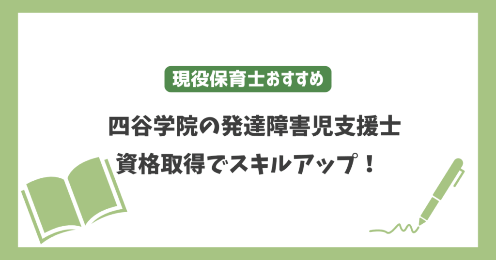 四谷学院の「発達障害児支援士」講座は、理論だけでなく、保育現場で役立つ実践的な支援スキルも学べるカリキュラムが魅力です。