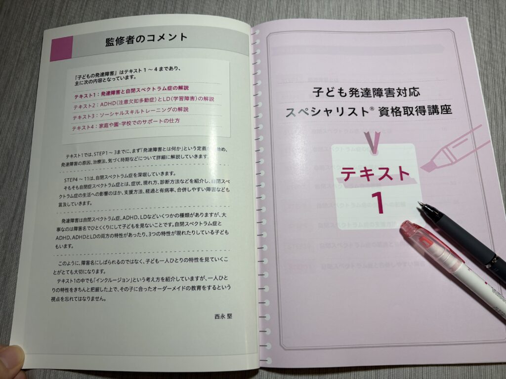 それぞれのテキストごとにテーマが分かれていて、順番に学んでいくことで、発達支援の全体像が自然とつながっていく感覚がありました。