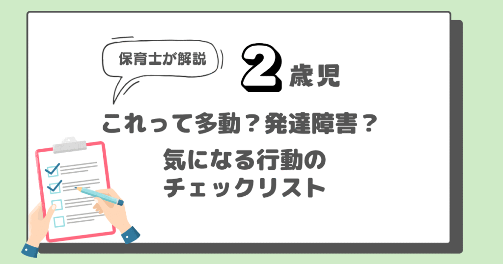 今日はそんな悩みを抱える保護者の方や保育者の方に向けて、2歳児の多動について、気になる行動のチェックリストや家庭でできる対応方法をお伝えします。