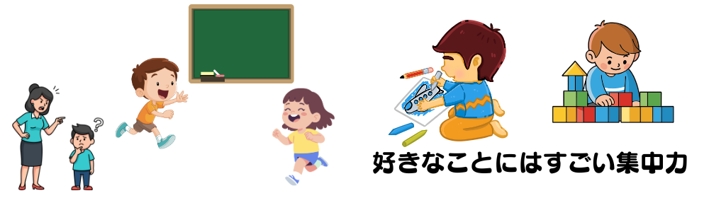 たとえば、ある子は集団の中では落ち着かず動き回ってしまう。でも、自分の好きなことに出会うと、驚くほど集中して取り組むことができる。