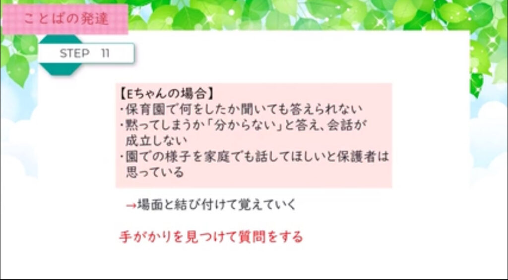 - 動画で学べるスモールステップカリキュラムで、忙しい保育士さんにもピッタリ。