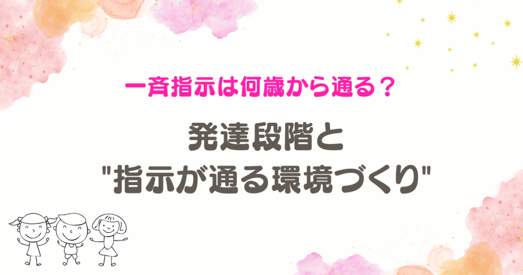 今回は、「一斉指示は何歳から通るのか?」を、発達段階と環境の視点から整理しながら、子どもが“聞ける環境”をどう作るかを一緒に考えていきましょう。