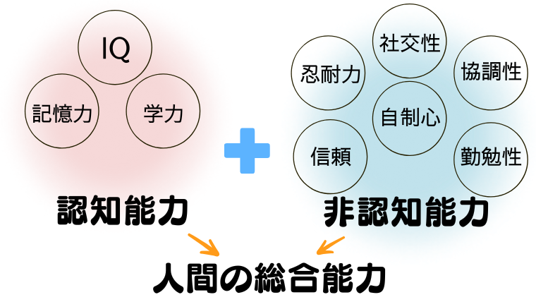 認知能力+非認知能力というところに着目しているところ印象的。「非認知能力=人間が担う力=人間力」つまりこれからの時代には「非認知能力」を伸ばすことがいかに大切かに気づかされました。